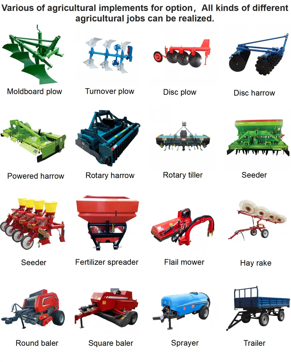 Způsoby připojení traktorů a zemědělských strojů zahrnují zejména tažný typ, typ odpružení a typ poloodpružení. Různé způsoby připojení mají různé použitelné scénáře a provozní stabilitu. Připojení tažného typu je vhodné pro velké zemědělské stroje, jako jsou velké přívěsy, a za provozu je zemědělský stroj připojen k traktoru přes tažnou tyč, která má silnou stabilitu a je vhodná pro přepravu na velké vzdálenosti a rozsáhlé operace; připojení typu odpružení je vhodné pro malé a střední zemědělské stroje, jako jsou rotační kultivátory a pluhy, a zemědělské stroje lze zvedat a spouštět prostřednictvím systému odpružení traktoru, což je výhodné pro operace na malých pozemcích nebo ve složitých terénech; mezi nimi leží poloodpružené spojení, vhodné pro střední a velké zemědělské stroje, vyvážení stability a flexibility. Při výběru je nutné zajistit, aby rozhraní připojení zemědělského stroje bylo konzistentní s rozhraním traktoru, aby se předešlo problémům, jako je nemožnost instalace nebo nestabilní připojení.